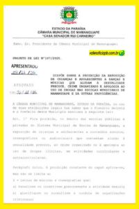 A PL de nº 107/2025, de autoria do vereador Guilherminho Fernandes, ‘dispõe sobre a proibição da exposição de crianças e adolescentes a danças e musicas que aludam a sexualidade precoce, crime organizado e apologia ao uso de drogas nas escolas municipais de Mamanguape (PB)’.