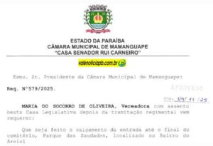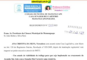O requerimento de nº 576, de autoria do vereador Crisanto Segundo pediu a instalação de semáforos. Já o gabinete da vereadora Maria da Saúde teve aprovação do requerimento de nº 579, onde pede calçamento para a parte de frente do Cemitério “Parque da Saudade”, no Bairro do Areal. Já a vereadora Professora Cristina, através do requerimento de nº 578, pediu a implantação de rotatória.