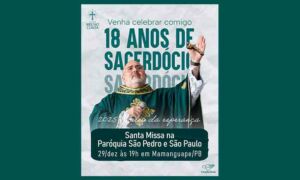 Nesta segunda-feira (29/12), acontece às 19h, na Igreja Matriz de Mamanguape (PB), no Litoral Norte do Estado, a Santa Missa em Ação de Graças, pelos 18 Anos de Sacerdócio, do padre Bruno Costa, da Canção Nova. O sacerdote é neto do saudoso Adailton Costa, fundador do Colégio Instituto Moderno. Com o tema “2025 –…