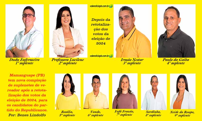 Com a retotalização dos votos da eleição de 2024 confira a nova composição dos suplentes do partido Republicanos de Mamanguape (PB)