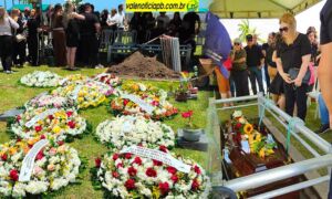 Imagem acima: Corpo do ex-prefeito Guilherme, 78 anos, desce a sepultura. Momento de muita emoção