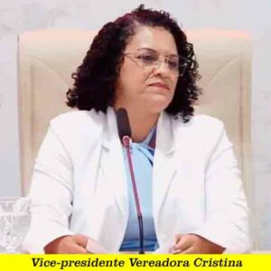 VEREADORA CRISTINA – A vice-presidente do poder legislativo conduziu bem os trabalhos da Sessão solene. Ela anunciou que a galeria que é composta por 13 vereadoras, duas são patronas: Maria Richilleu e a Professora Biná.