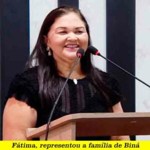 FÁTIMA – A professora Fátima representou a família da ex-vereadora Antônia Bezerril Rodrigues – Professora Biná. Ele fez um agradecimento dizendo que todos estavam felizes.
