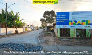 Das ruas que fazem ligação com a Avenida Senador Rui Carneiro, no Bairro do Campo, em Mamanguape, a gestão do prefeito Joaquim já pavimentou partes das Ruas Maria do Livramento e Fábio Barbosa Vaz.