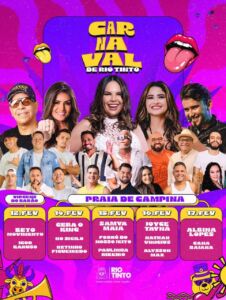 Já na região litorânea, (foto abaixo) a festa começa a partir da noite da sexta-feira, com o primeiro bloco saindo em Praia de Campina. No sábado, domingo, segunda e terça-feira de Carnaval, a programação segue intensa, com blocos de rua e grandes festas no Areal da Folia, consolidando Praia de Campina como um dos principais polos carnavalescos do litoral norte paraibano durante o período momesco.