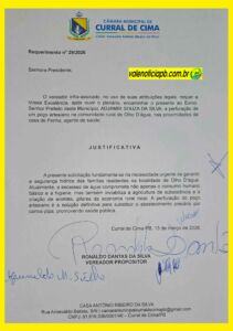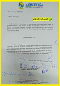 Requerimento nº 29/2026, solicita a perfuração de um poço artesiano, na comunidade rural de Olho D’água, nas proximidades da casa de Penha, Agente de Saúde.